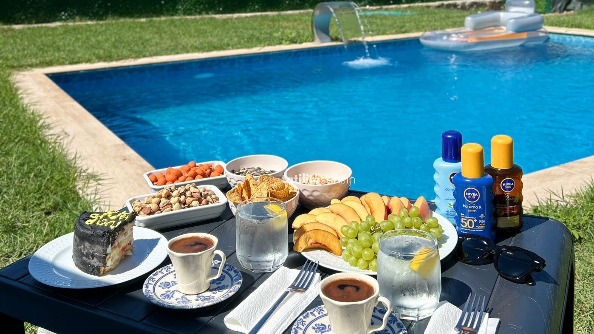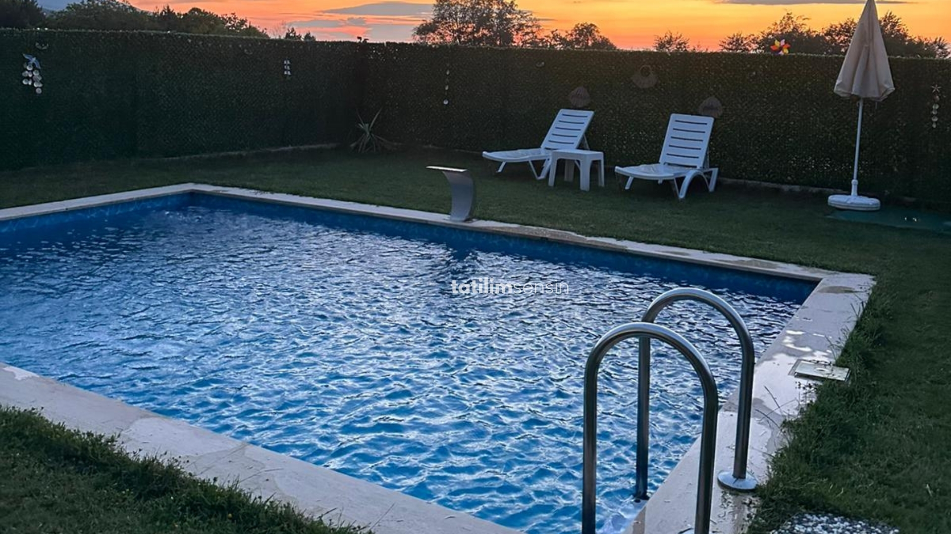 Geniş bahçesi içinde yer alan 4x6 metre özel havuz ve 2 kişilik jakuzi, misafirlere günün her saati özel alanlarında dinlenme imkânı sunuyor. Yerden ısıtma, şömine ve klima ile dört mevsim konforlu konaklama sağlanırken; barbekü alanı, tam donanımlı mutfak ve sessiz ortamıyla keyifli bir tatil deneyimi yaşatıyor.