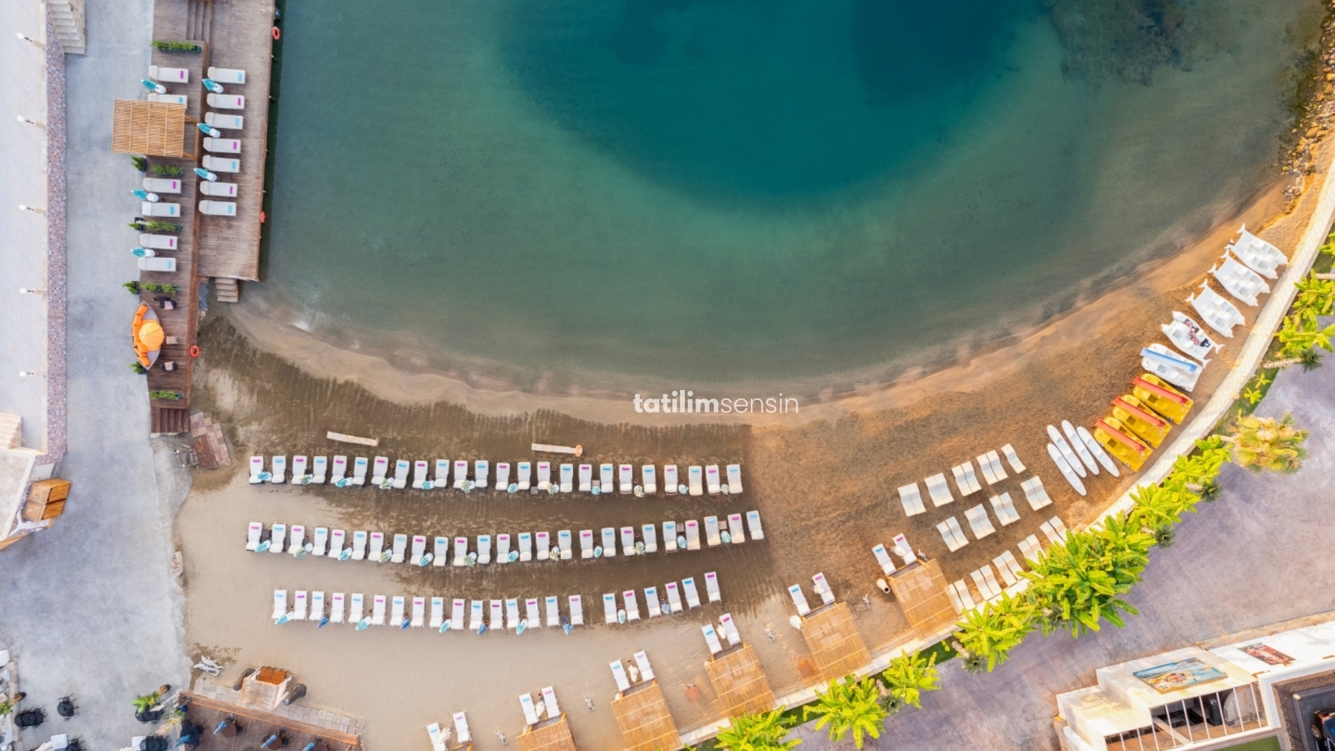 Evet, tesisin kendine ait kum plajı ve özel iskelesi bulunmaktadır.