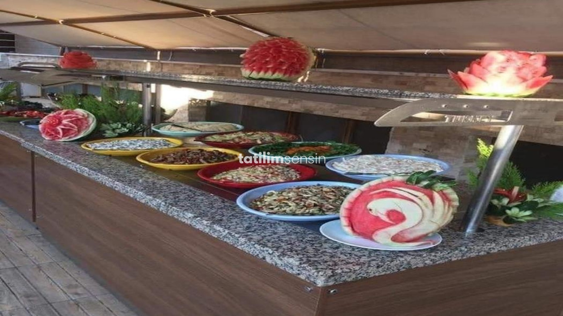 Tesis, alkolsüz her şey dahil konseptiyle hizmet veriyor. Gün boyu belirlenen yiyecek ve içecekler ücretsiz.