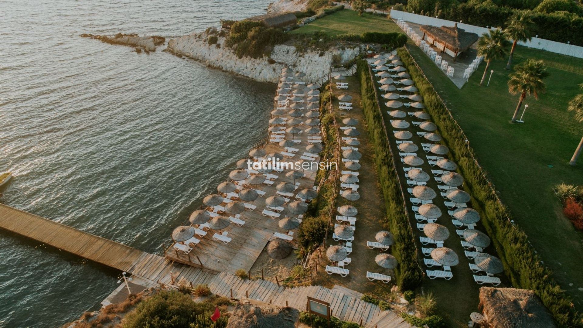 Evet, otele ait özel bir plaj ve iskele mevcuttur. Plaj kum ve çakıldan oluşmaktadır.
