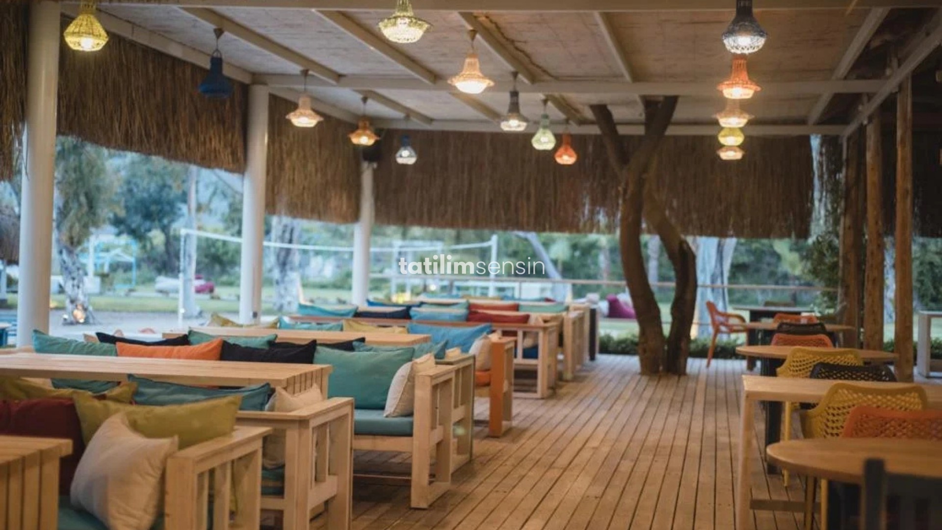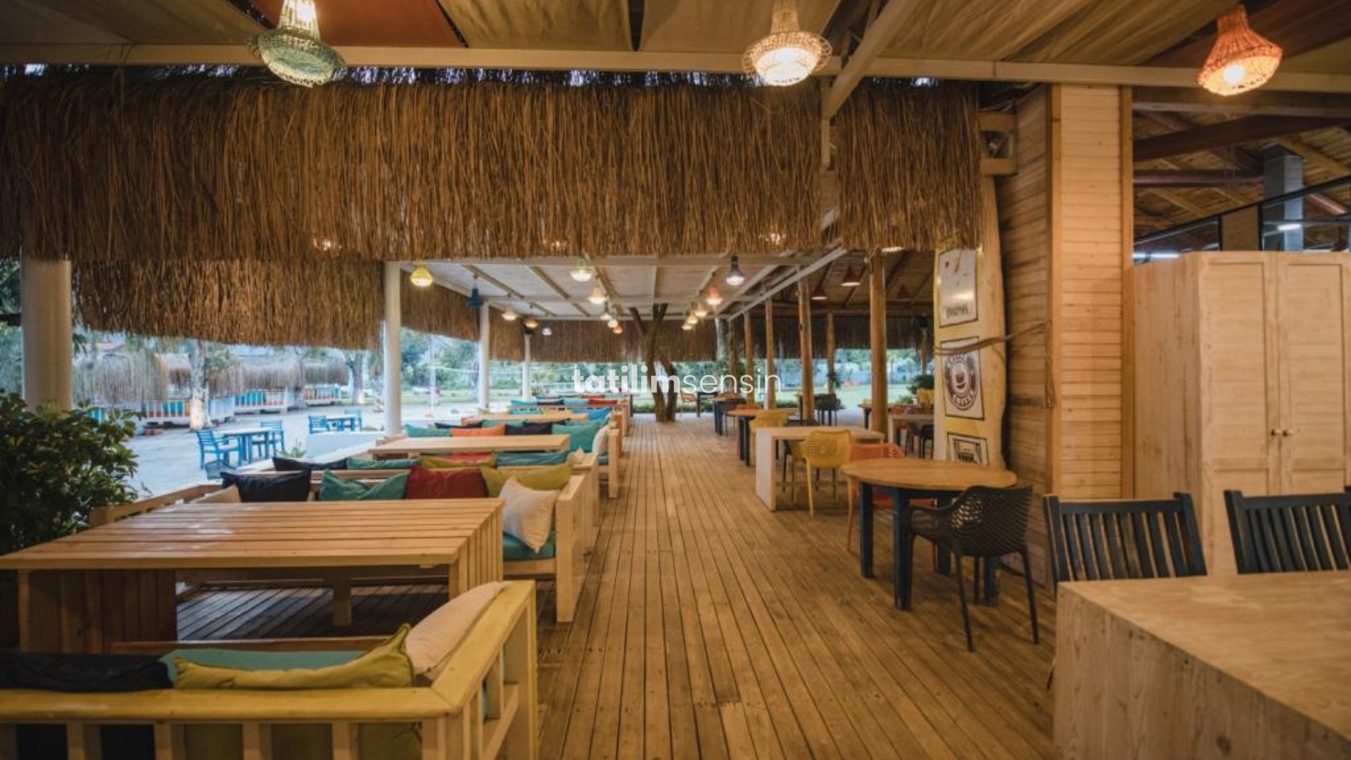 Akdeniz mutfağından özel menü seçenekleri Damak tadınıza uygun kokteyl çeşitleri Hamak veya özel çardaklarda keyif DJ performansları eşliğinde eğlence