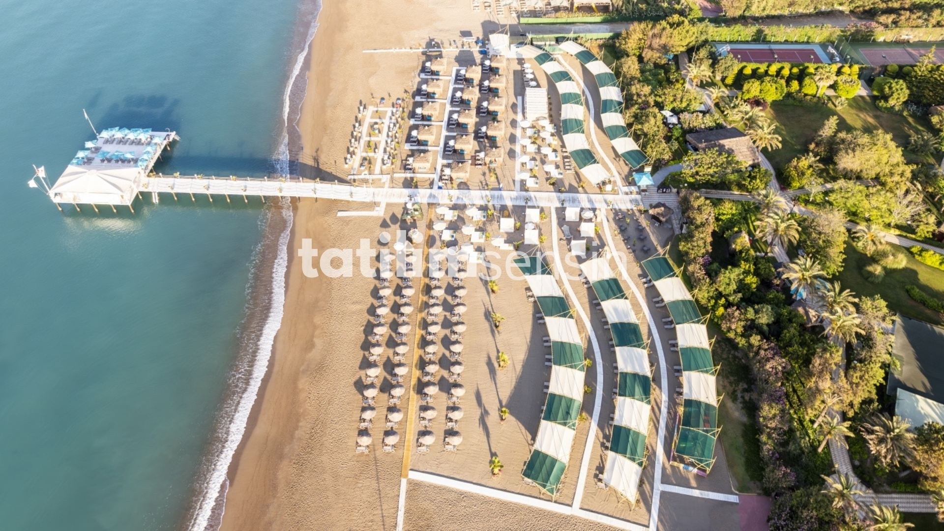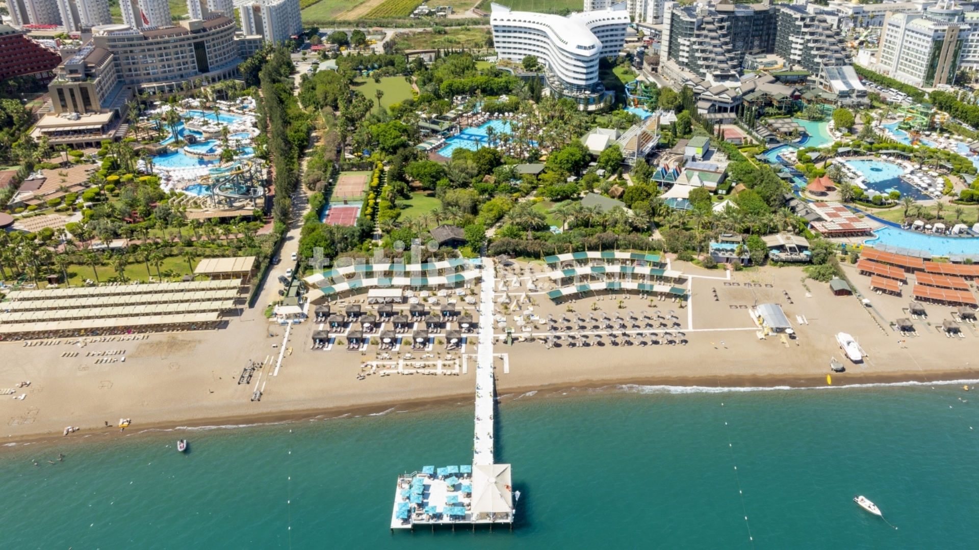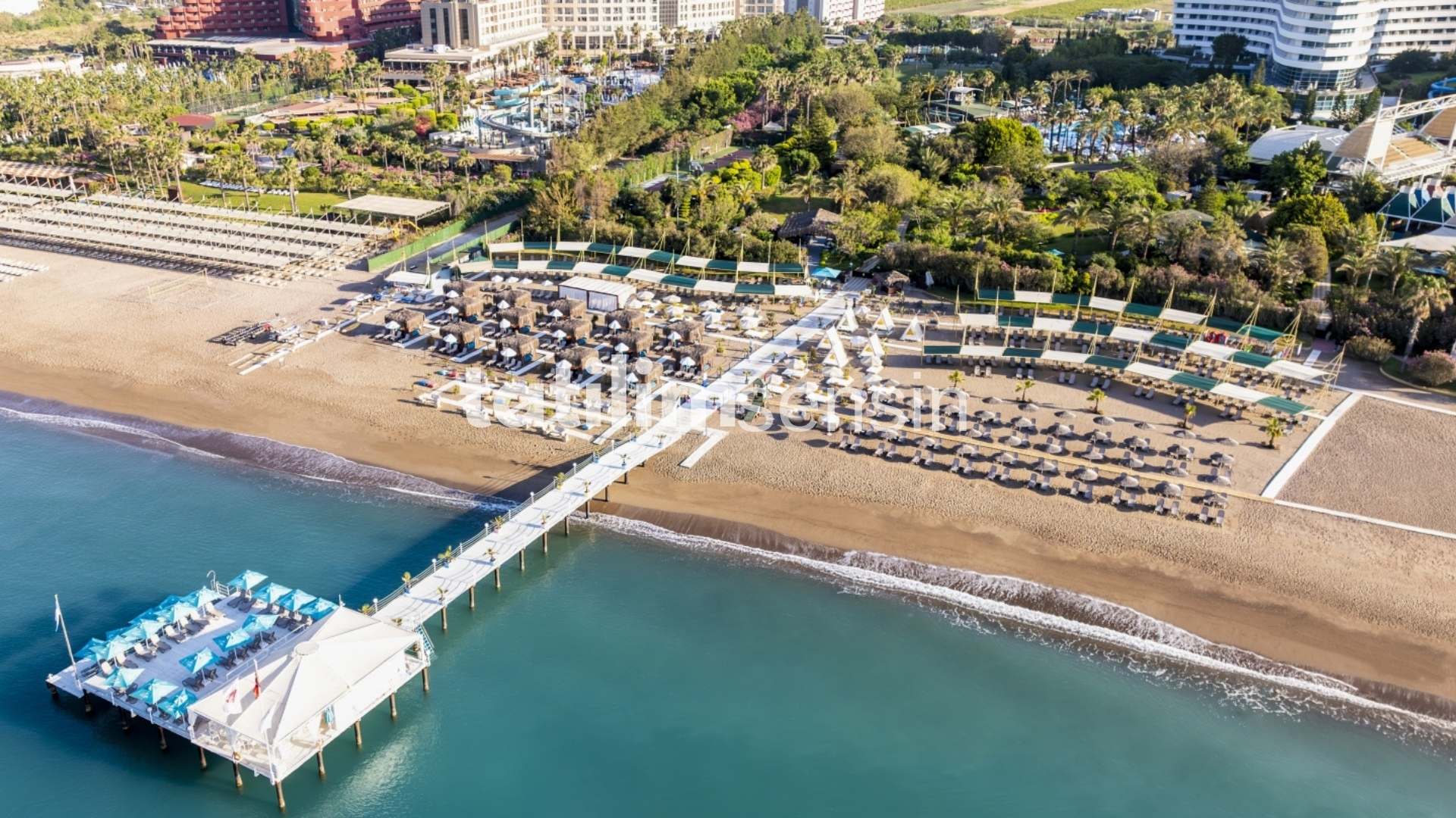 Açık ve kapalı yüzme havuzları, özel plaj alanı ve aquapark ile deniz ve güneş keyfi garanti ediliyor.