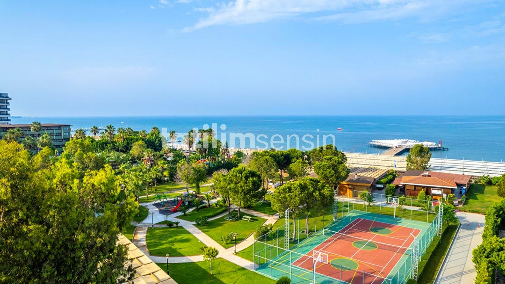 Açık ve kapalı havuzların yanı sıra denize sıfır konumuyla özel plaj hizmeti mevcut.