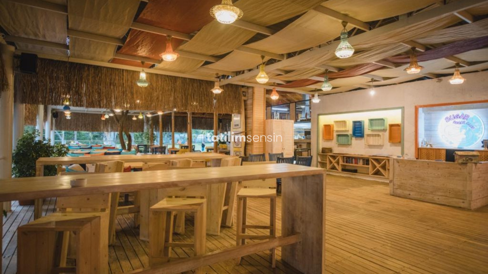 Akdeniz mutfağından özel menü seçenekleri Damak tadınıza uygun kokteyl çeşitleri Hamak veya özel çardaklarda keyif DJ performansları eşliğinde eğlence