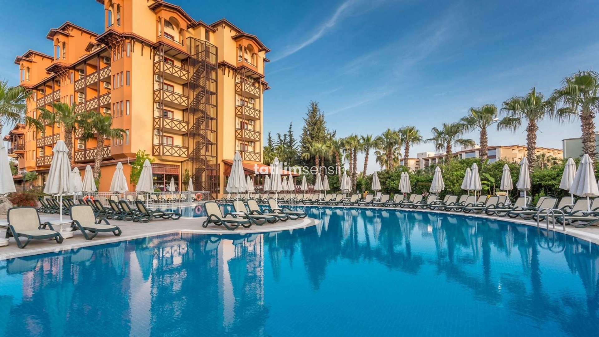 Side’nin Kumköy mevkiinde, denize sadece 100–200 metre mesafede ve özel shuttle servisiyle ulaşılabilen bir oteldir.