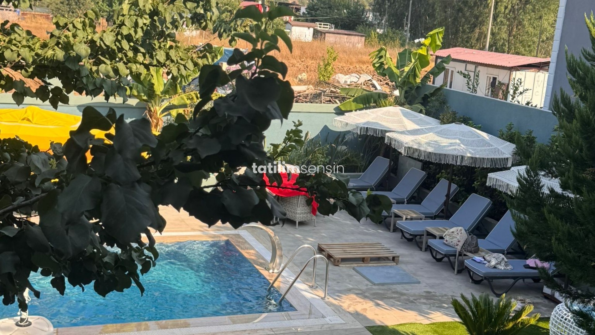 Hisarönü Değirmen yanı mevkiinde, 2 ayrı daireden oluşan havuzlu villamız; toplam 3 yatak odası, 3 salonu ve 12 kişilik kapasitesiyle kalabalık aile ve arkadaş grupları için ideal. Denize yalnızca 5-10 dakika mesafede, huzurlu ve keyifli bir tatil sizi bekliyor.